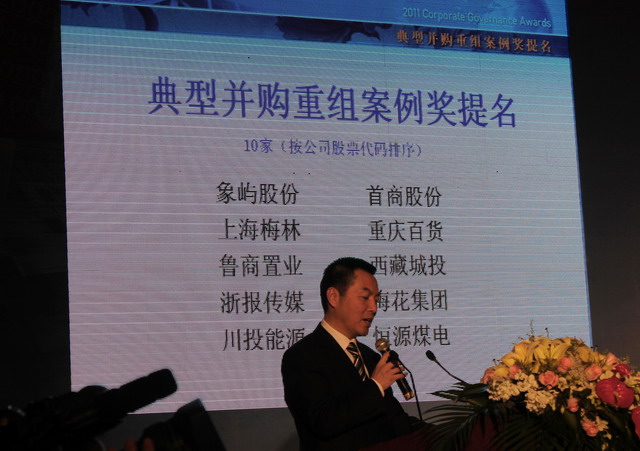 2011年12月19日,由上海證券交易所主辦、國務(wù)院國資委和經(jīng)濟(jì)合作與發(fā)展組織(OECD)共同支持的第十屆中國公司治理論壇在上海召開。中國證監(jiān)會主席郭樹清、上海市委副書記、市長韓正、上海市委常委、副市長屠光紹等領(lǐng)導(dǎo)出席論壇并給獲得公司治理專項(xiàng)獎(jiǎng)的各獲獎(jiǎng)上市公司頒獎(jiǎng)。象嶼集團(tuán)副總裁、象嶼股份副董事長陳方代表公司應(yīng)邀出席論壇。今年,象嶼股份因其在歷時(shí)2年多的破產(chǎn)重整和資產(chǎn)重組中的優(yōu)良表現(xiàn)和創(chuàng)新而獲得“典型并購重組案例獎(jiǎng)”提名。此獎(jiǎng)項(xiàng)代表著業(yè)界和上交所對于象嶼股份成功借殼上市的肯定和贊賞。