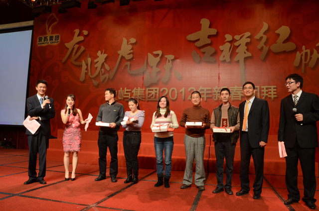 兔樂豐倉送舊年,龍騰喜浪迎新紀(jì)。1月14日晚,年度表彰大會(huì)后,象嶼集團(tuán)2012年新春團(tuán)拜會(huì)在廈門國(guó)際會(huì)展酒店隆重舉行。象嶼集團(tuán)在廈各公司員工、異地公司代表、退休老同志等上千人歡聚一堂,喜迎龍年新春佳節(jié)。王龍雛董事長(zhǎng)率集團(tuán)黨委會(huì)、董事會(huì)、經(jīng)營(yíng)班子成員共同舉杯給全體員工拜年,向全體象嶼同仁、家屬和離退休老同志表示親切的慰問和美好的祝愿。對(duì)員工過去一年的辛勤付出表示衷心感謝和誠(chéng)摯敬意。