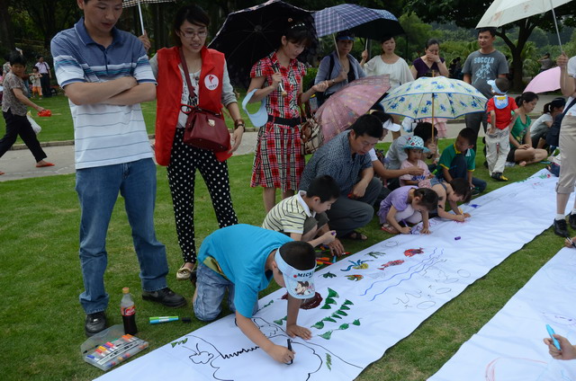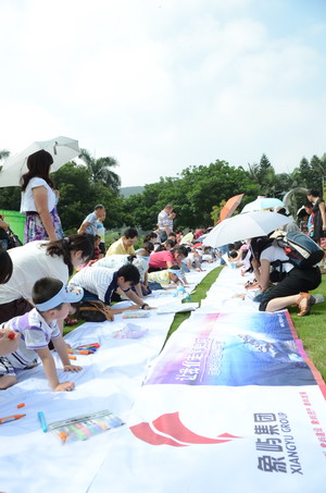 在歡樂的開場熱身舞蹈后,每位小朋友在家長的幫助下,從“讓世界充滿愛”、“我們的海洋朋友”、“小小環(huán)保家”三個繪畫主題中選取一個,在預先準備好的白色長卷上,將自己對愛護海洋、保護環(huán)境、互幫友愛的理解通過一支支水彩筆繪諸紙上,通過一幅幅可愛的圖畫,表達他們對公益的關(guān)注和認識,與其他的象嶼“雛鷹”們一起,提前度過了一個非常有意義的“六一”兒童節(jié)。