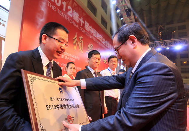 2012中國物流杰出企業(yè)頒獎(jiǎng)現(xiàn)場,廈門象嶼股份有限公司榮獲“2012中國物流杰出企業(yè)”稱號