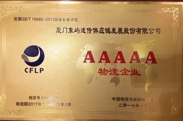 4月7日,由中國物流與采購聯合會主辦的“物流企業(yè)授牌大會暨物流業(yè)創(chuàng)新發(fā)展論壇”在云南省昆明市順利召開,會議對本批A級物流企業(yè)進行了集中授牌,象嶼速傳供應鏈發(fā)展股份有限公司榮膺最高評級國家AAAAA級綜合服務型物流企業(yè),成為象嶼旗下繼象嶼股份后第二家獲此殊榮的企業(yè)。