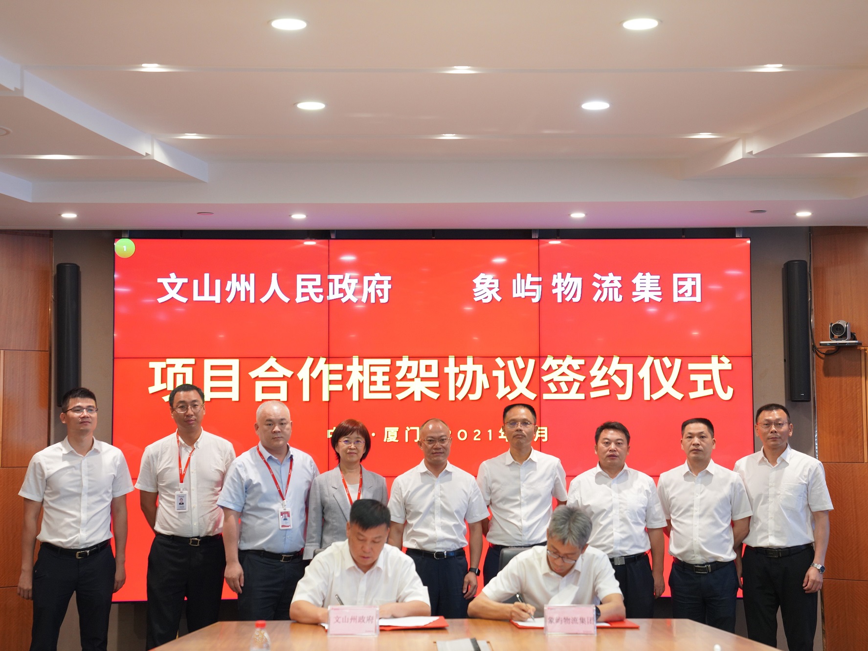 5月30日,云南省文山壯族苗族自治州人民政府與廈門象嶼物流集團(tuán)有限責(zé)任公司簽署合作框架協(xié)議。文山州委常委、常務(wù)副州長李先祥,象嶼股份黨委副書記、副總經(jīng)理、象嶼物流集團(tuán)總經(jīng)理齊衛(wèi)東分別代表簽約雙方簽署協(xié)議,象嶼集團(tuán)副總裁林俊杰、文山州政府多位領(lǐng)導(dǎo)出席見證。
