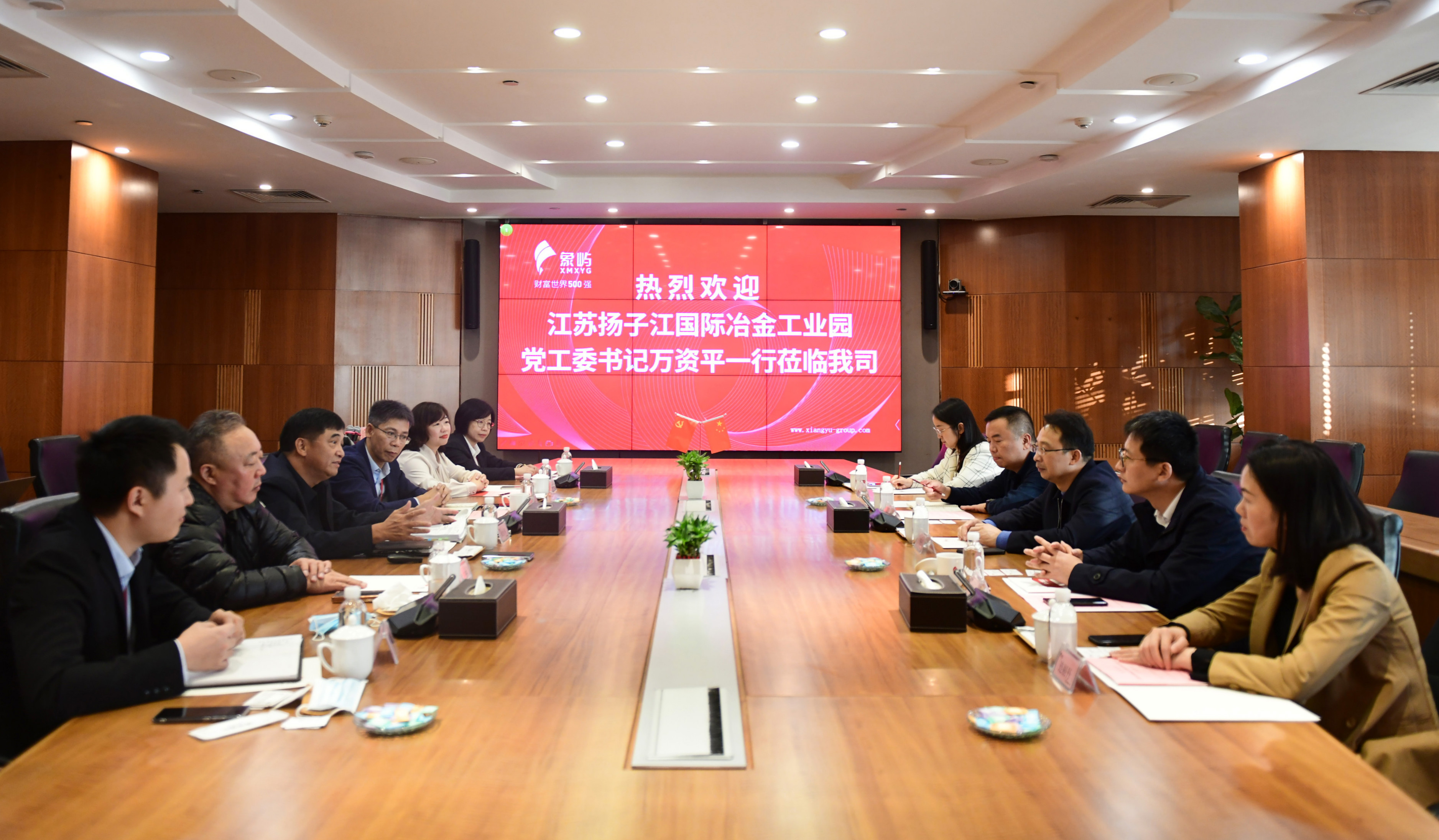 江蘇揚(yáng)子江國際冶金工業(yè)園黨工委書記萬資平一行到訪象嶼集團(tuán)