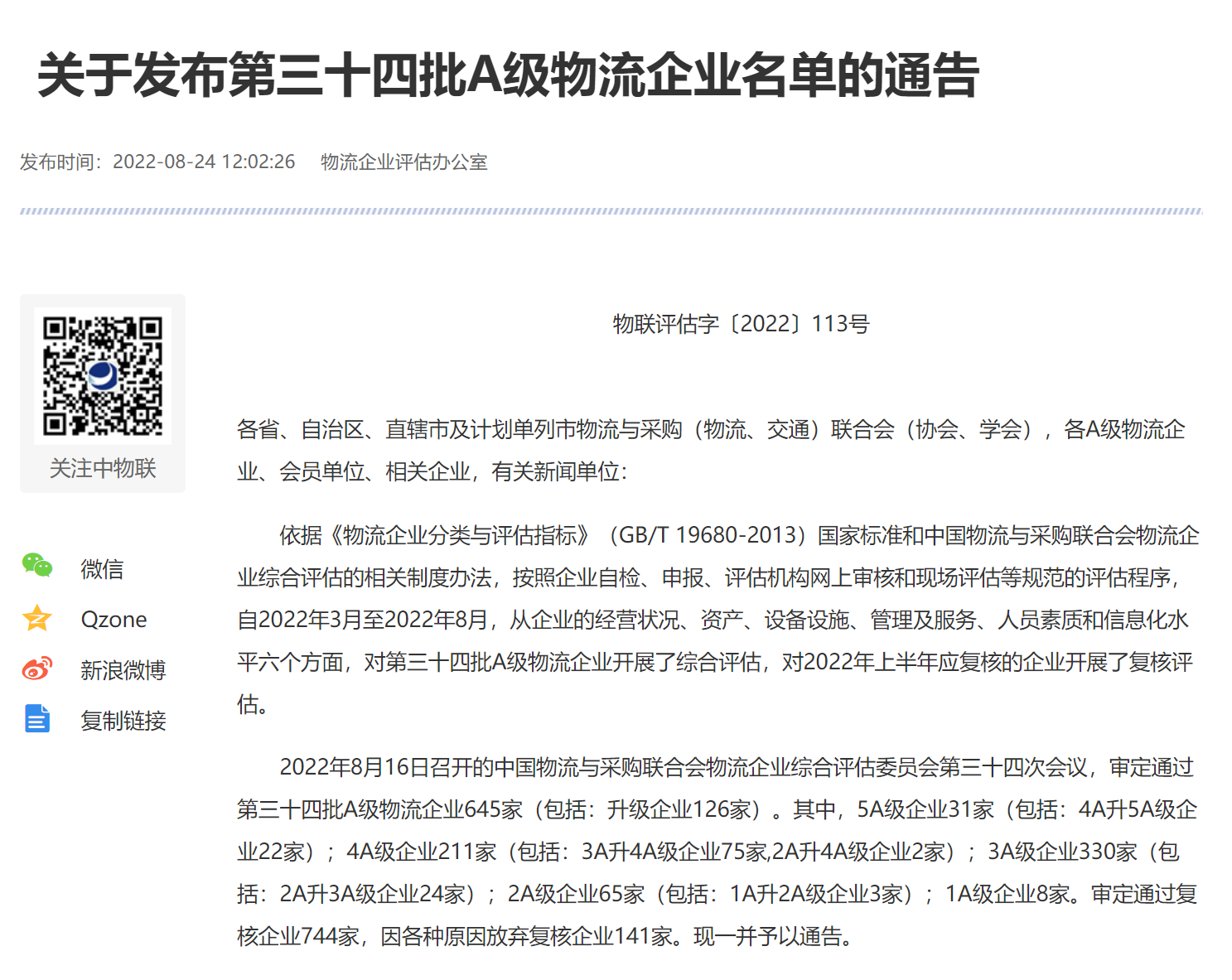 今天,中國物流與采購聯(lián)合會發(fā)布“全國第三十四批A級物流企業(yè)名單”,象嶼股份旗下企業(yè)象道物流集團有限公司(以下簡稱:象道物流)以大宗商品物流可持續(xù)發(fā)展創(chuàng)新模式與實踐成果,榮膺最高評級國家5A級綜合服務(wù)型物流企業(yè),成為象嶼股份體系第三家獲此殊榮的企業(yè)。